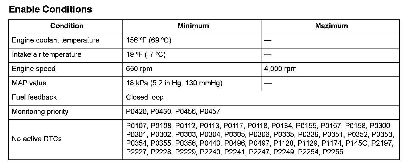 Monitor Execution, Sequence, Duration, DTC Type, OBD Status
