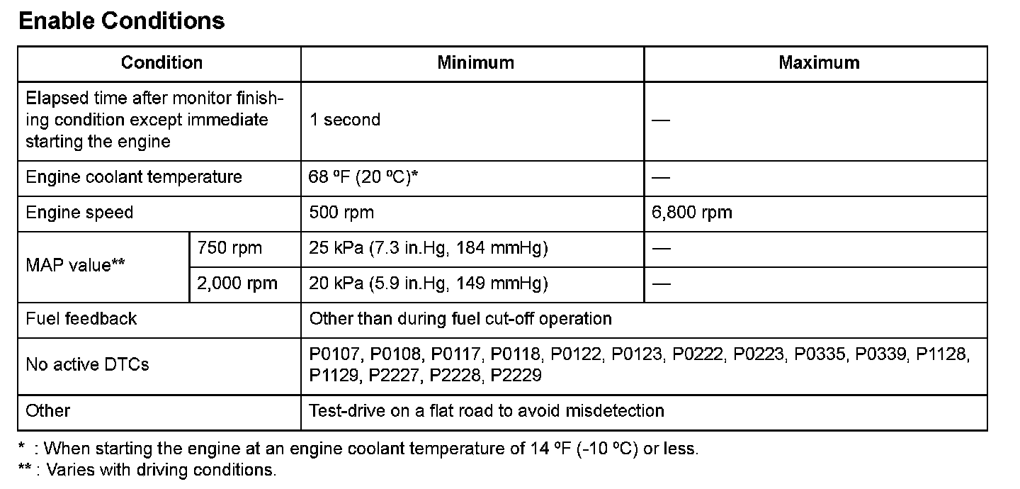 Type 2 (2 drive cycles): When the number of misfires per 1,000 engine revolutions reaches the level that affects FTP mode exhaust emissions, a DTC is stored and the MIL comes on.