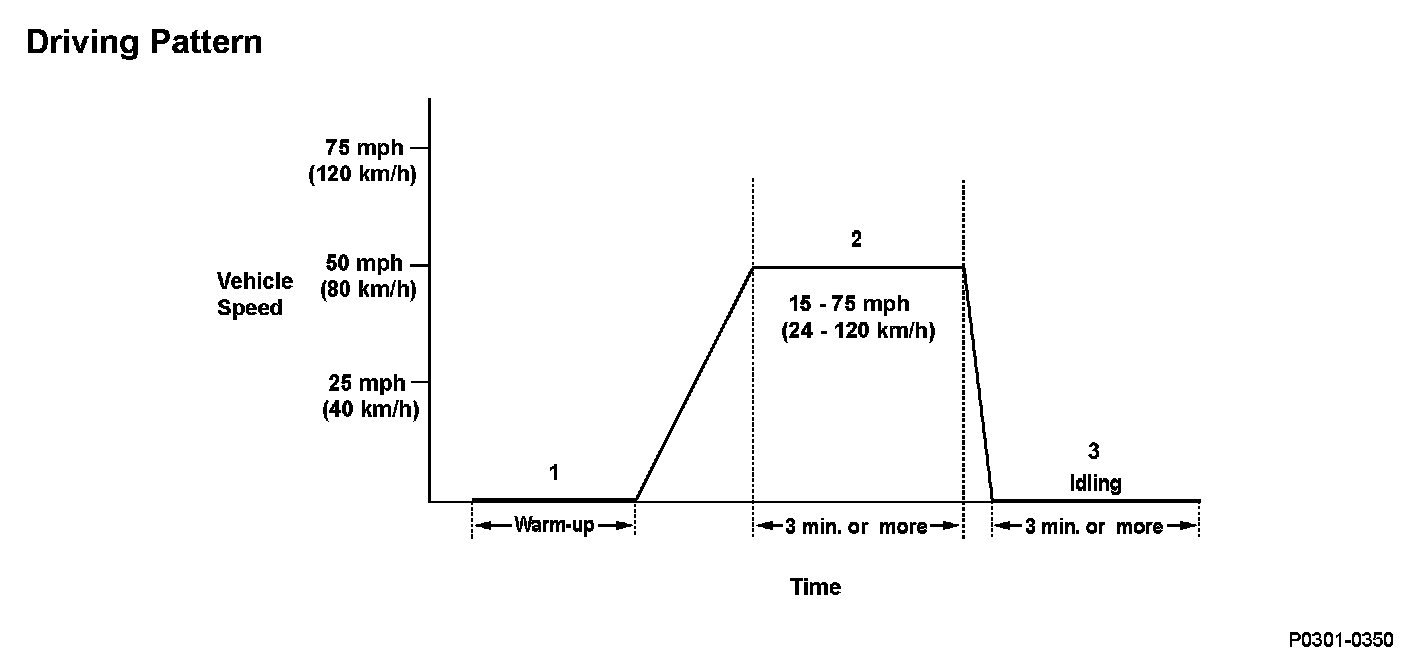 - When you have difficulty duplicating the DTC because of road conditions and traffic situations, repeat the driving pattern several times.