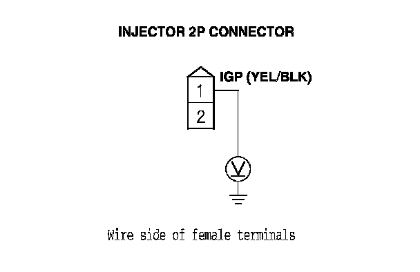28. Measure the voltage between injector 2P connector terminal No. 1 and body ground.