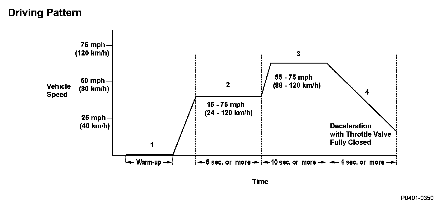 3. Then, drive at a steady speed between 55 - 75 mph (88 - 120 km/h) for at least 10 seconds.