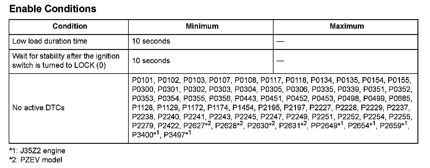 The output from the EVAP canister purge valve is 0.2 kPa (0.07 in.Hg, 2 mmHg) or more for at least 10.0 seconds.