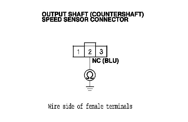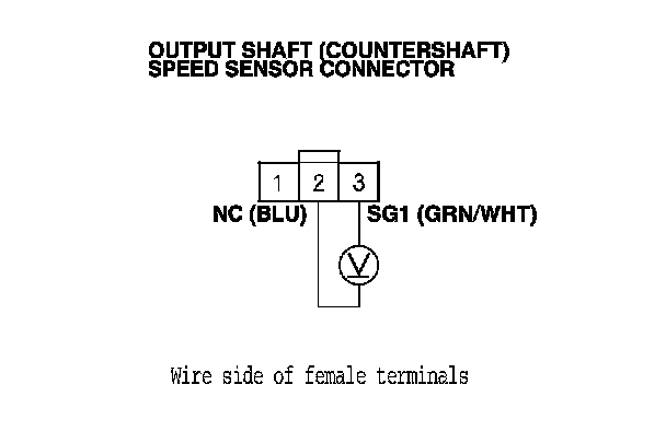 14. Measure the voltage between output shaft (countershaft) speed sensor connector terminal No. 1 and body ground.
