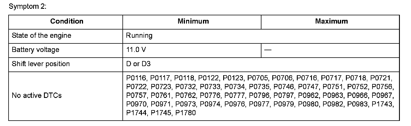 Symptom 2 (When the vehicle does not start at 1st gear)