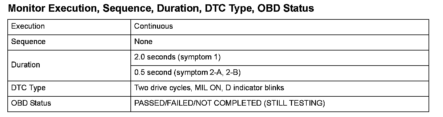 Monitor Execution, Sequence, Duration, DTC Type, OBD Status