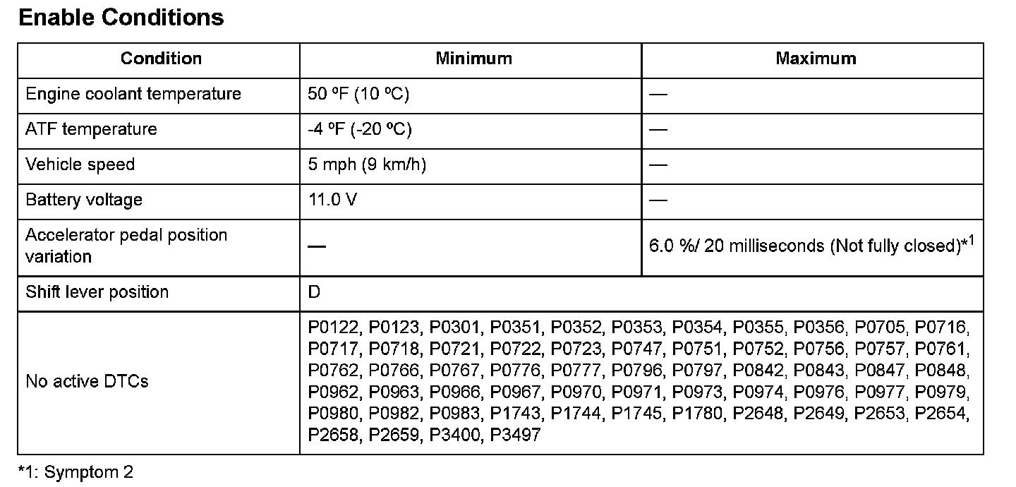 - Driven in 3rd gear with a history that symptom 1 occurred.