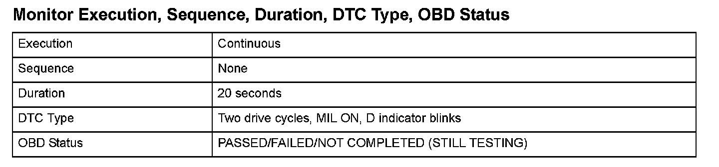 Monitor Execution, Sequence, Duration, DTC Type, OBD Status