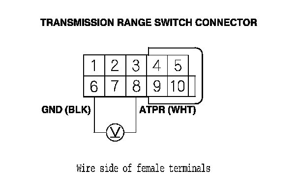 7. Measure the voltage between transmission range switch connector terminals No. 6 and No. 8.