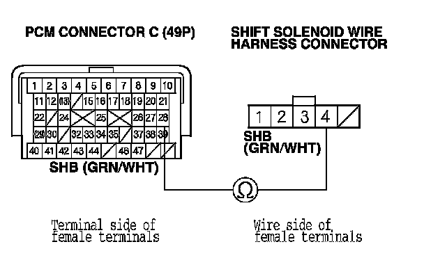 YES - Check for poor connections or loose terminals between shift solenoid valve B and the PCM. If the PCM was updated, substitute a known-good PCM, How to Troubleshoot A/T Systems then go to step 24. If the PCM was substituted, go to step 1.