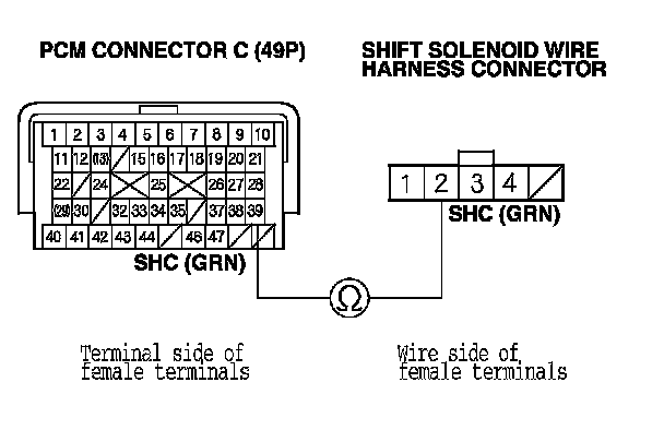 YES - Check for poor connections or loose terminals between shift solenoid valve C and the PCM. If the PCM was updated, substitute a known-good PCM, How to Troubleshoot A/T Systems then go to step 24. If the PCM was substituted, go to step 1.