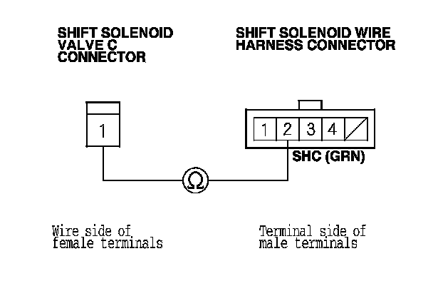 5. Select Shift Solenoid Valve C in the Miscellaneous Test Menu, and test shift solenoid valve C with the HDS.