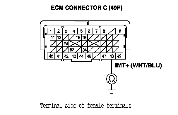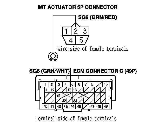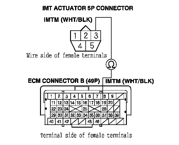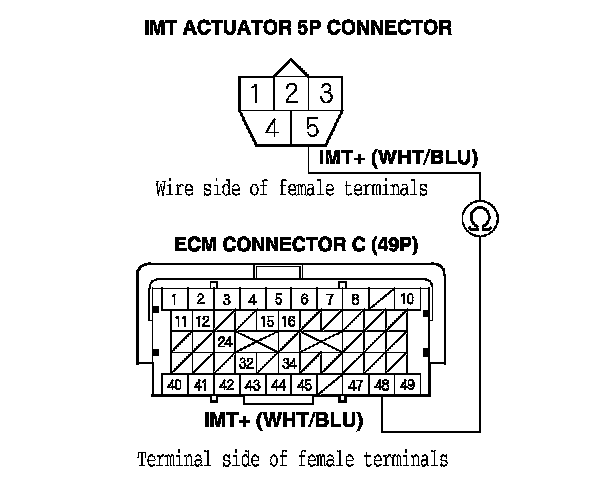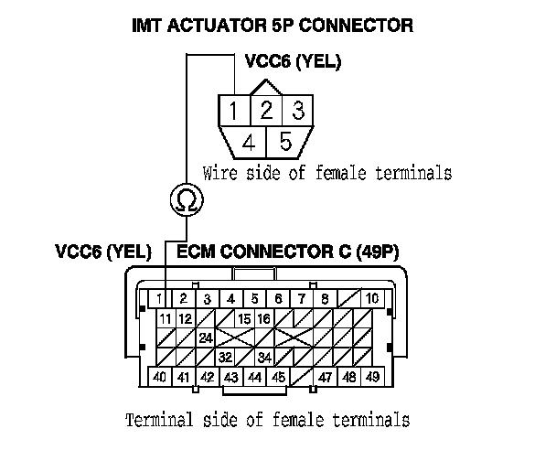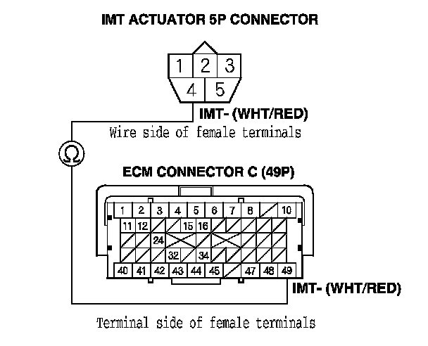 24. Check for continuity between IMT actuator 5P connector terminal No. 4 and ECM connector terminal C49.