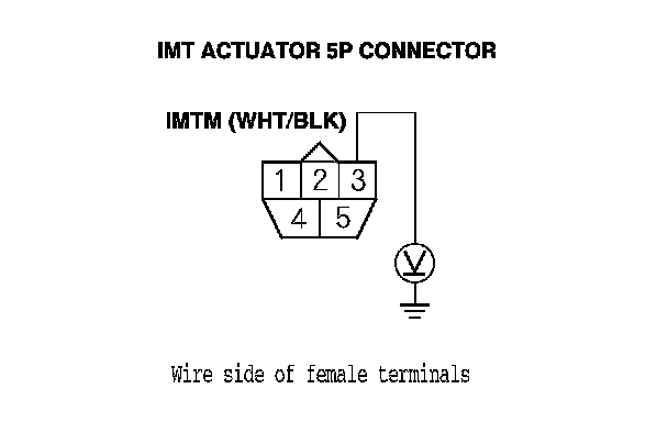 12. Measure the voltage between IMT actuator 5P connector terminal No. 3 and body ground.
