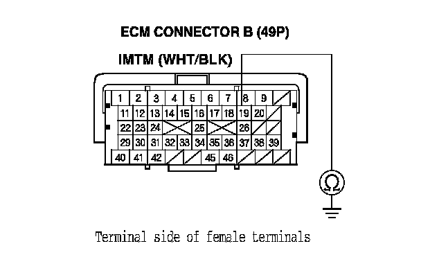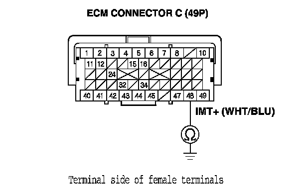 16. Check for continuity between ECM connector terminal C49 and body ground.