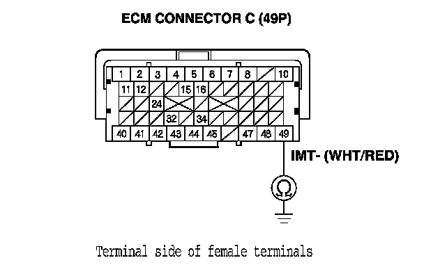 18. Check for continuity between IMT actuator 5P connector terminal No. 4 and ECM connector terminal C49.