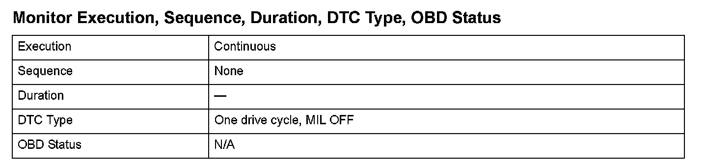 Monitor Execution, Sequence, Duration, DTC Type, OBD Status