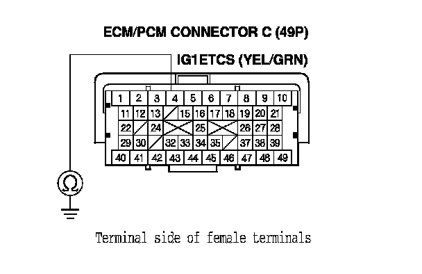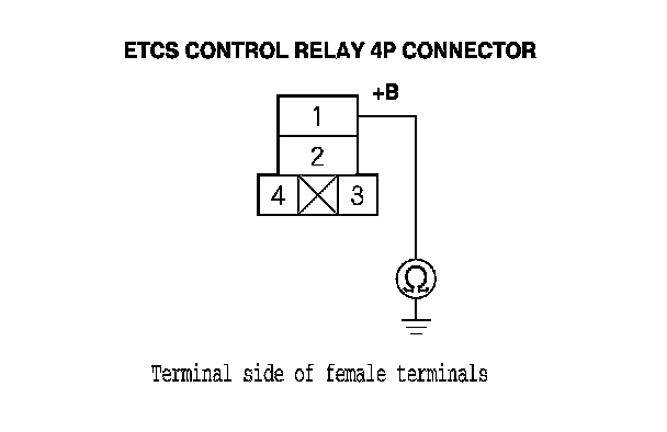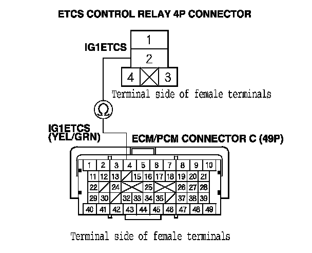 14. Check for continuity between ETCS control relay 4P connector terminal No. 2 and ECM/PCM connector terminal C4.