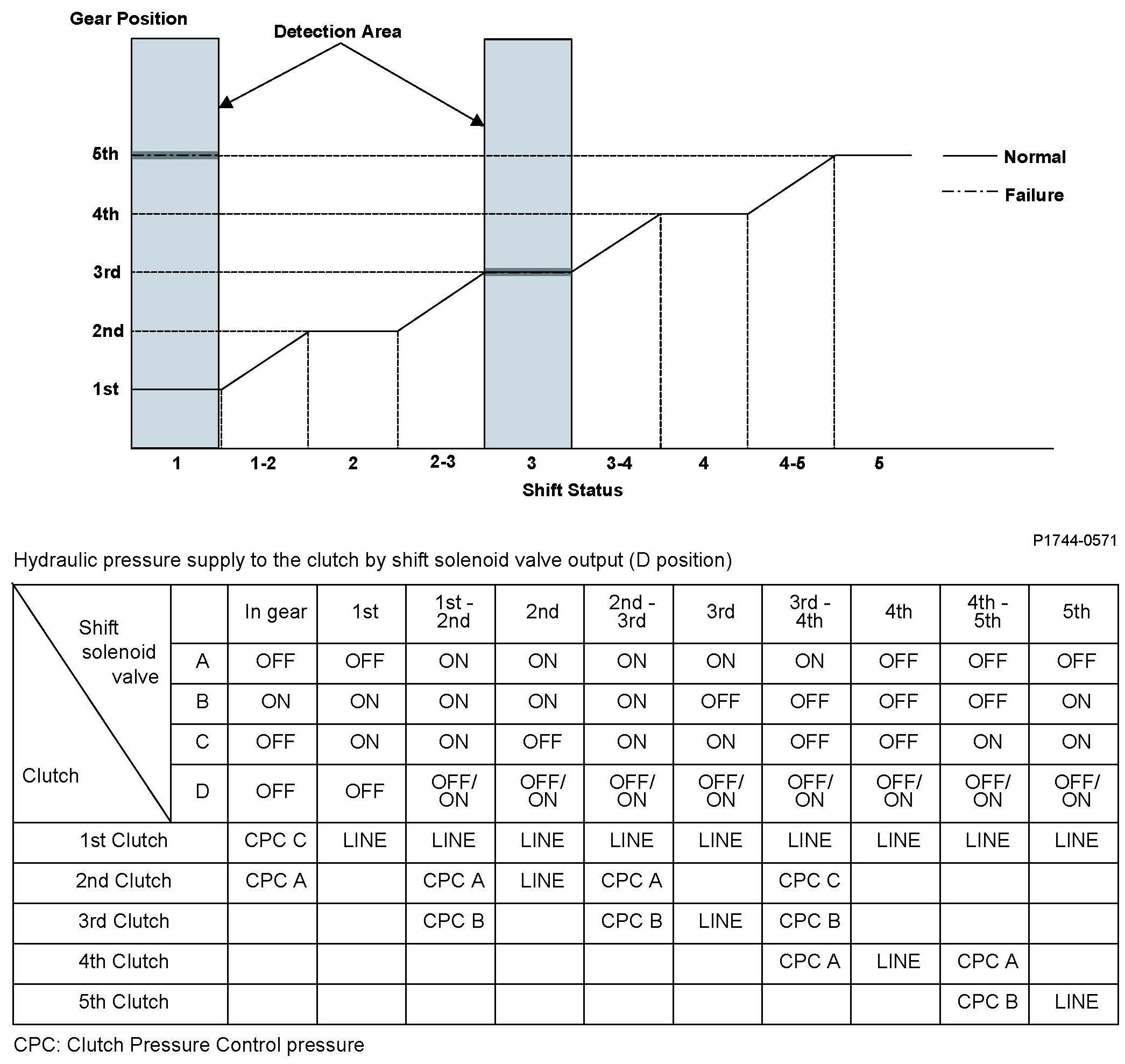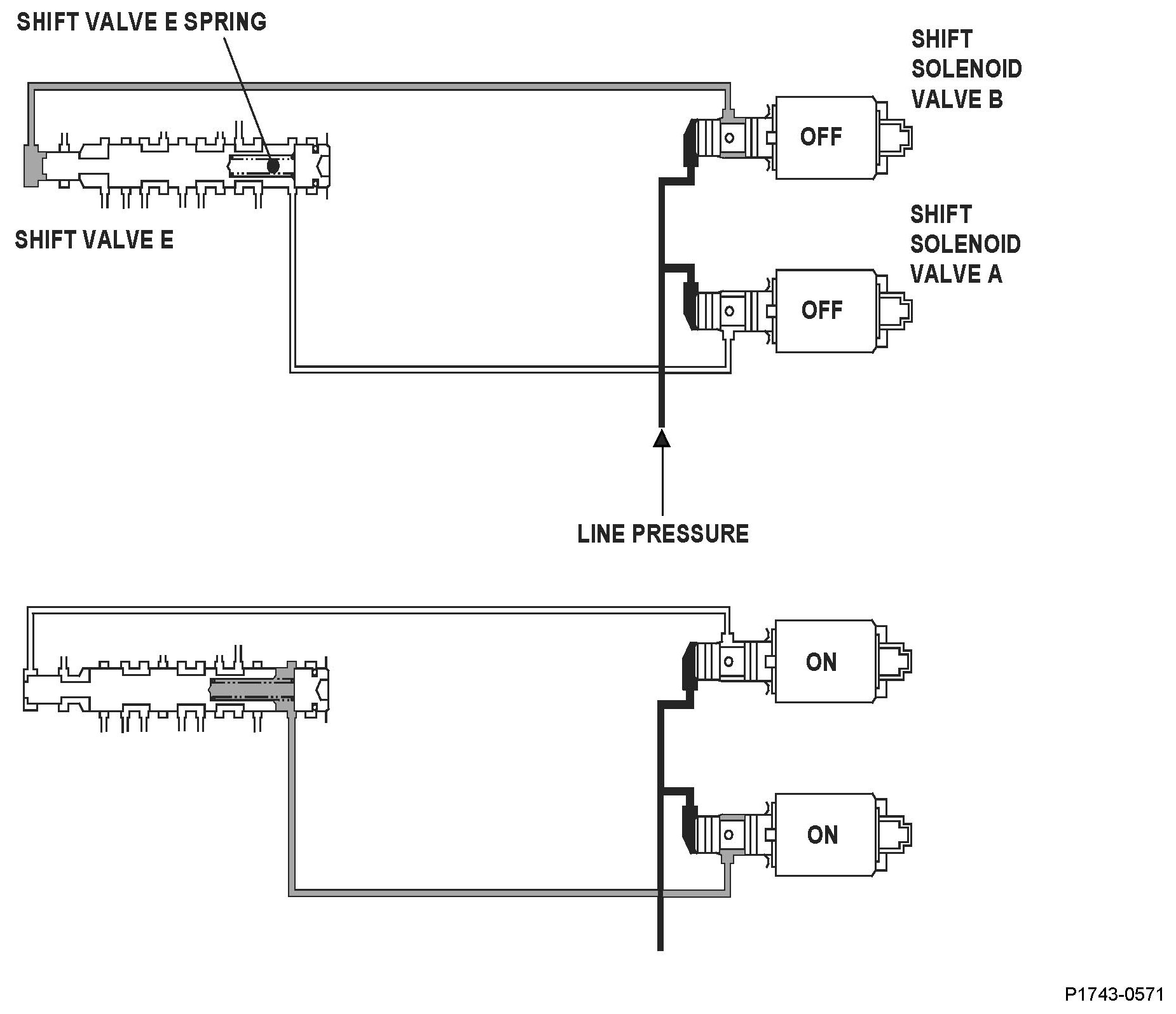 Advanced DiagnosticsDTC P1744: Problem in Shift Control System; Shift Valve E Stuck ON