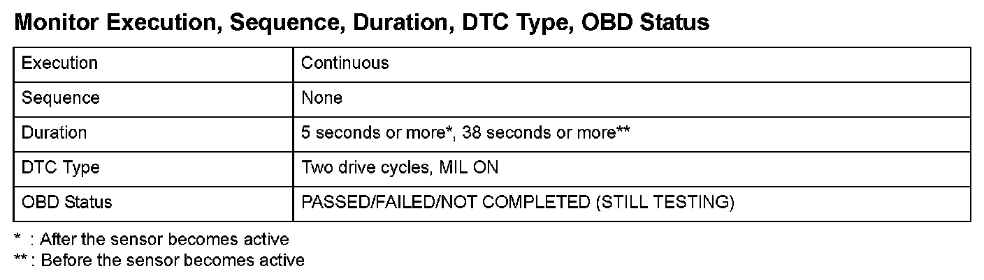 Monitor Execution, Sequence, Duration, DTC Type, OBD Status