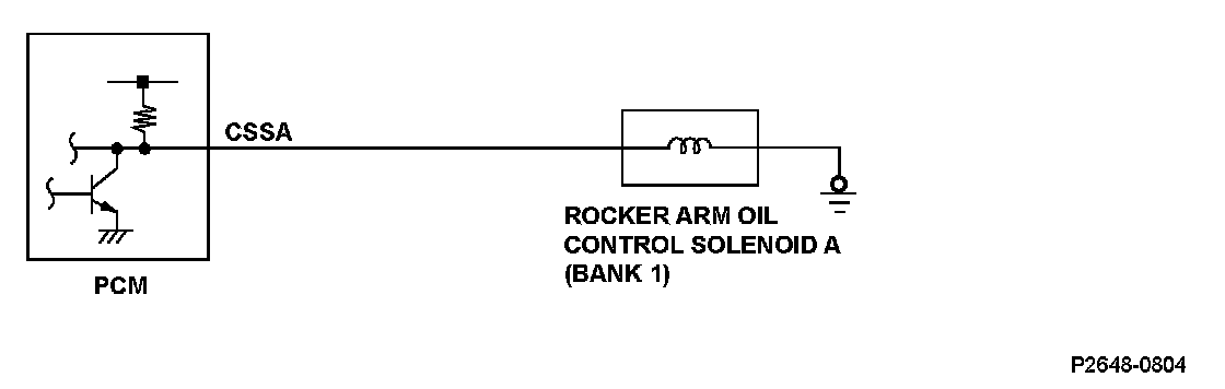 The return signal is OFF (low) for at least 1.0 second when the PCM outputs the ON (high) signal to the rocker arm oil control solenoid A (bank 1).