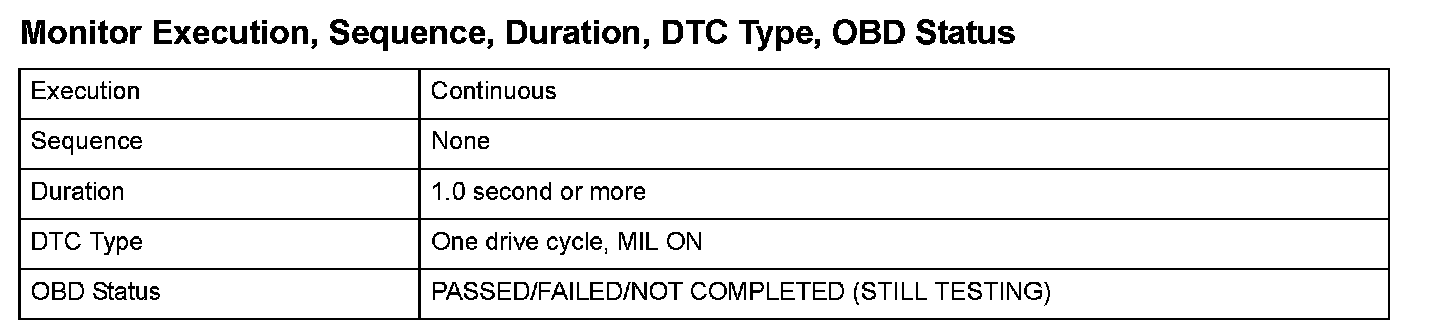 Monitor Execution, Sequence, Duration, DTC Type, OBD Status