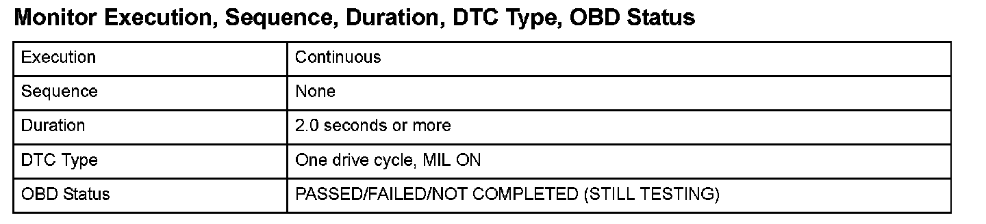 Monitor Execution, Sequence, Duration, DTC Type, OBD Status