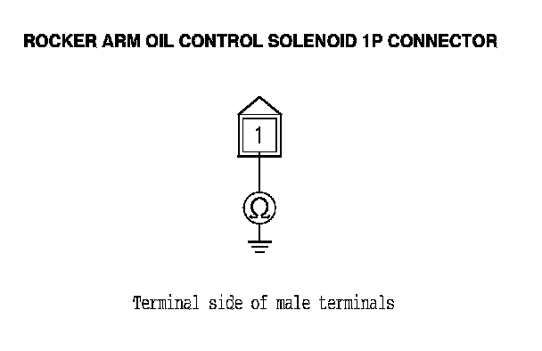 6. At the solenoid side, measure the resistance between the rocker arm oil control solenoid 1P connector terminal and the solenoid valve body.