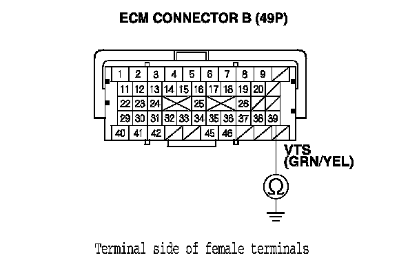 9. Check for continuity between ECM connector terminal B39 and body ground.