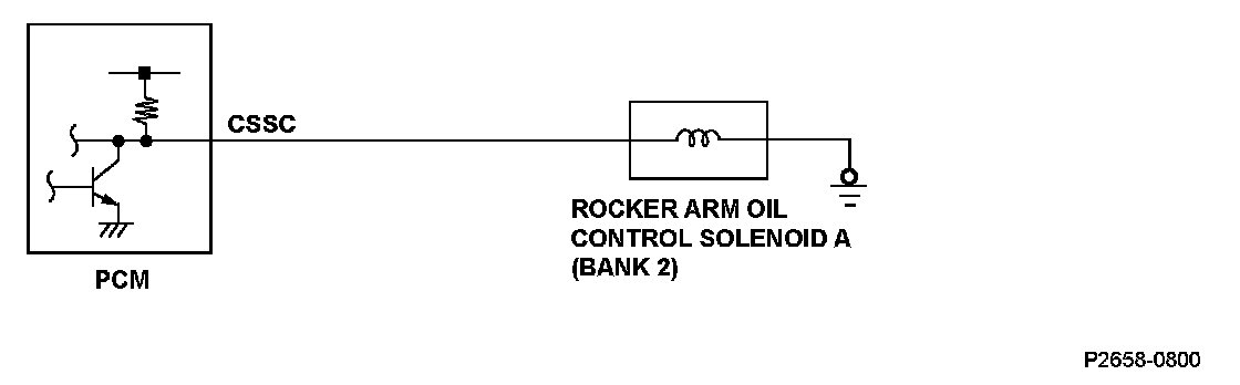 The return signal is OFF (low) for at least 1.0 second when the PCM outputs the ON (high) signal to the rocker arm oil control solenoid A (bank 2).