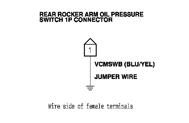 17. Connect the rear rocker arm oil pressure switch 1P connector terminal to body ground with a jumper wire.