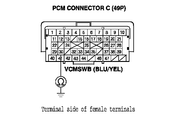 12. Check for continuity between PCM connector terminal C30 and body ground.