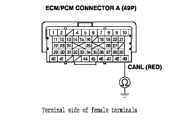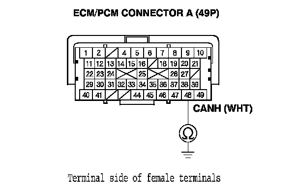 13. Check for continuity between ECM/PCM connector terminal A49 and body ground.