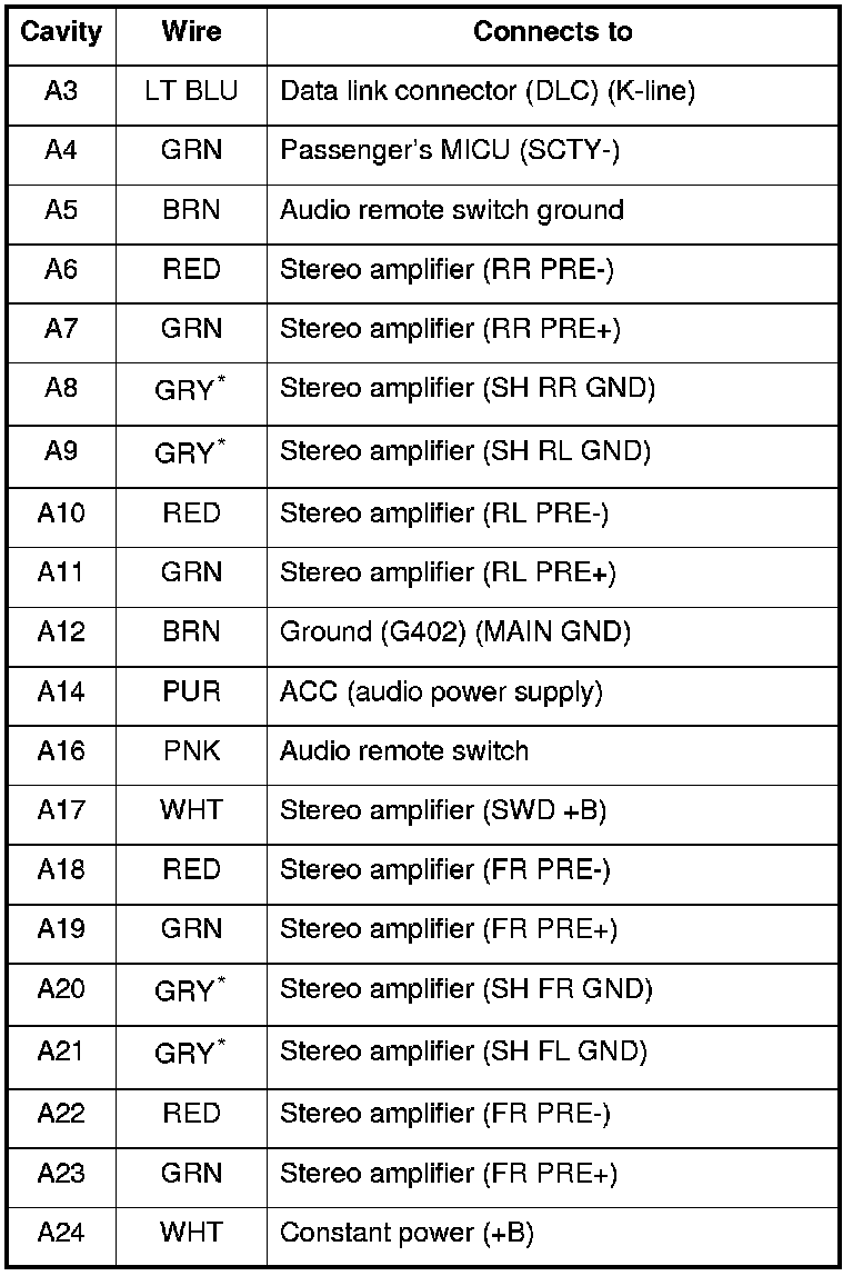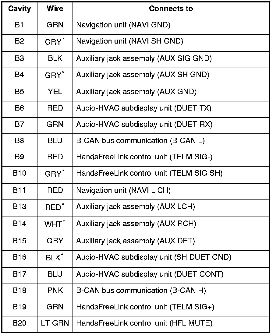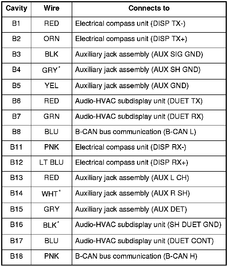 *: The shielded wires have a heat-shrink tube insulating the outside of the wire. The color of the insulating tube, typically black or dark gray, may not match the color of the wire shown on the circuit diagram.