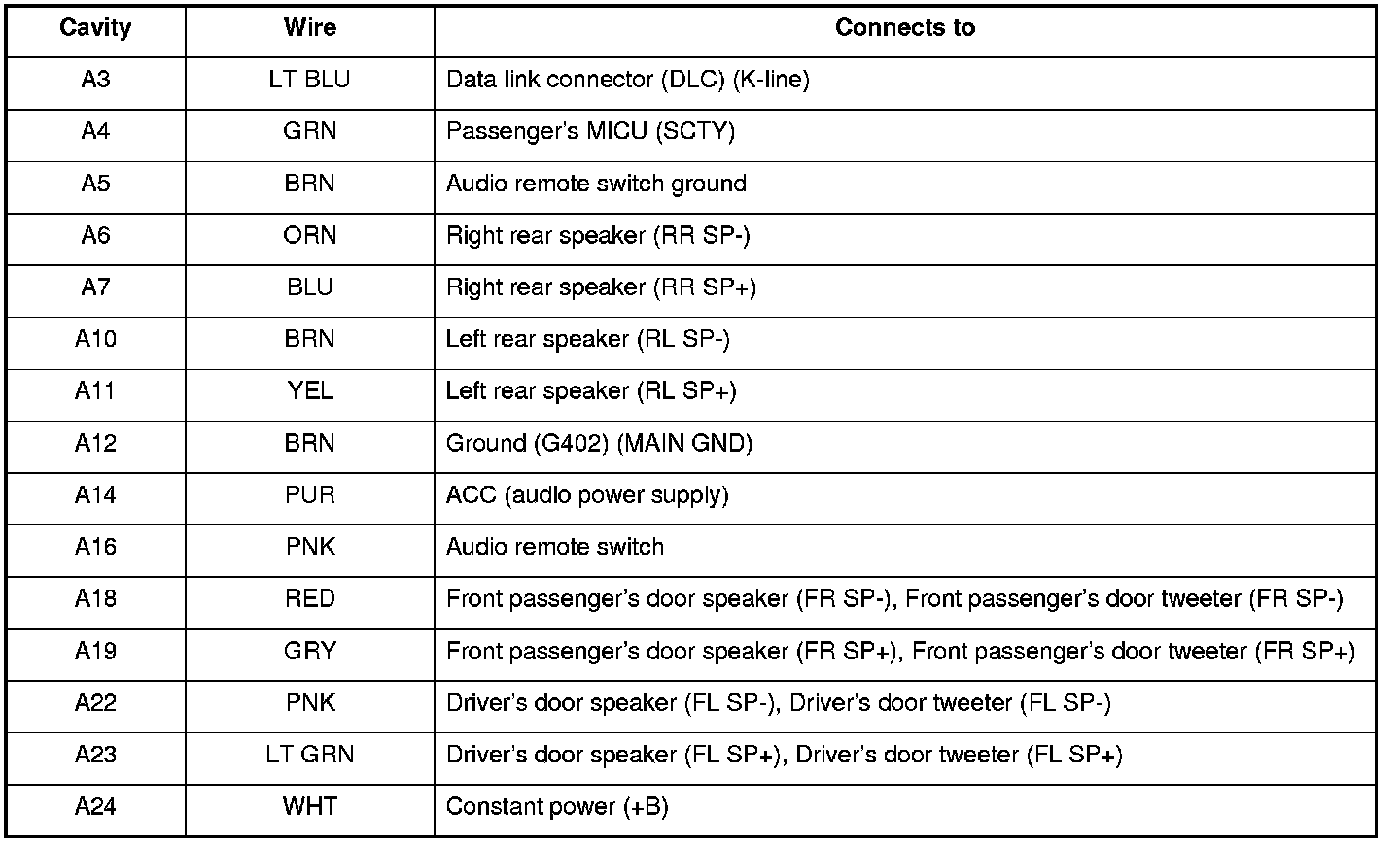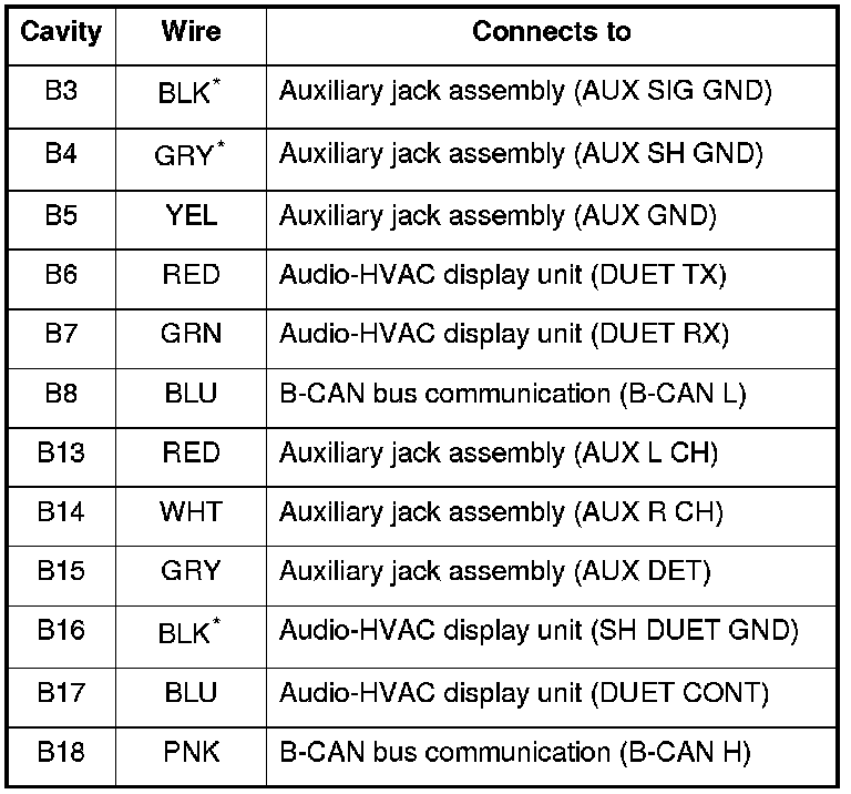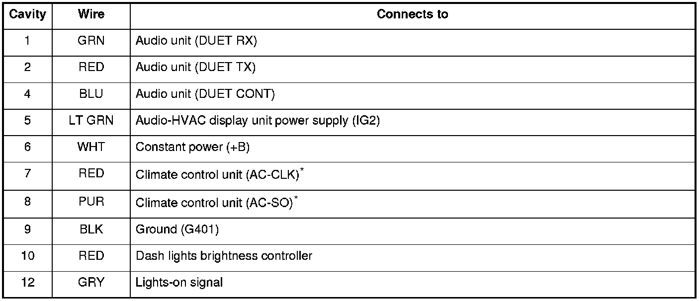 Audio-HVAC Display Unit Connector for Inputs and Outputs (Without Navigation)