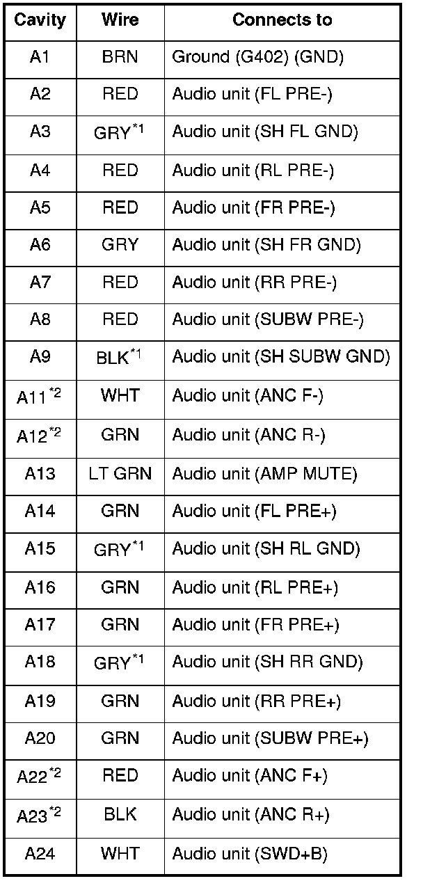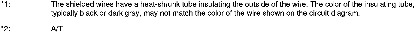 *2: The shielded wires have a heat-shrunk tube insulating the outside of the wire. The color of the insulating tube, typically black or dark gray, may not match the color of the wire shown on the circuit diagram.