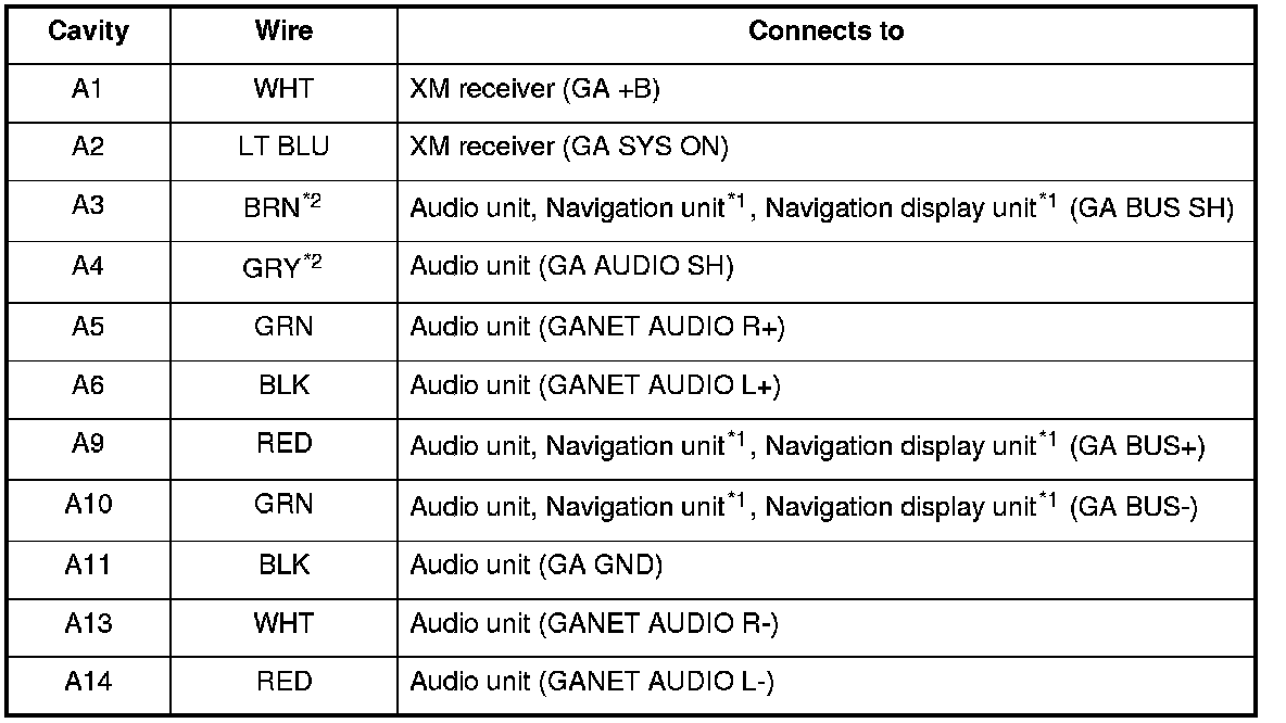 XM Receiver Connector A (14P)