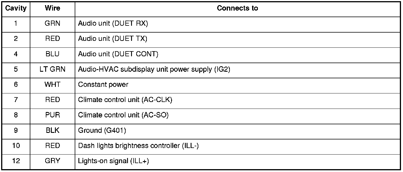 Audio-HVAC Subdisplay Unit 12P Connector