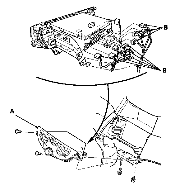 7. Remove the self tapping screws and bolts, then pull out the audio unit (A).