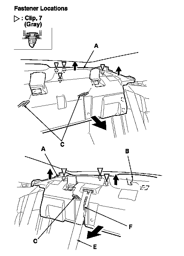 -1 Pull up the entire rear shelf to detach the clips.