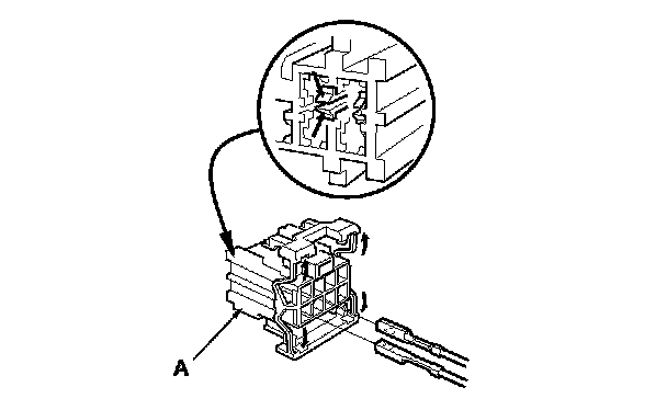 6. Disassemble the power mirror 8P connector (A), and remove all terminals from it.