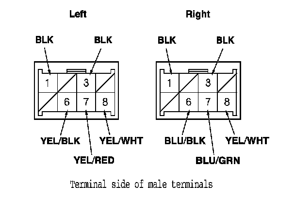 5. Record the power mirror 8P connector terminal locations and wire colors.