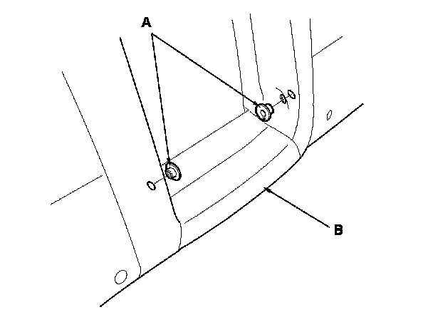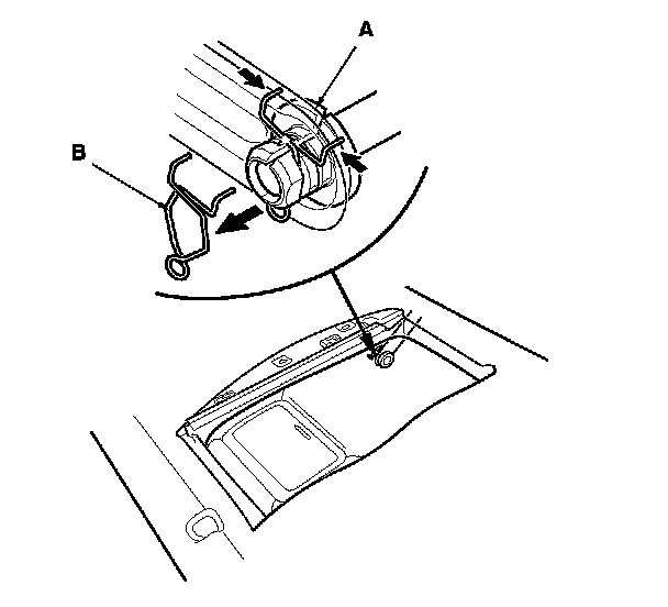 4. Remove the clip (A) from the left portion of the armrest pivot (B).