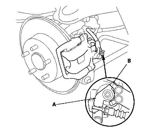 6. Make sure the lever (A) on the rear brake caliper contacts the arm (B).