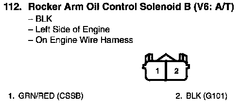 View 112 Rocker Arm Oil Control Solenoid B Connector View (A/T)