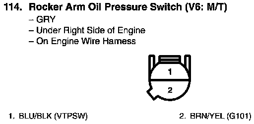 View 114 Rocker Arm Oil Pressure Switch Connector View (M/T)