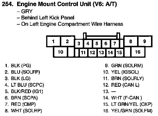 View 254 Engine Mount Control Unit Connector View (A/T)
