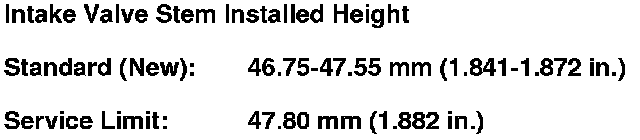 9. If the valve stem installed height is over the service limit, replace the valve and recheck. If it is still over the service limit, replace the cylinder head; the valve seat in the head is too deep.