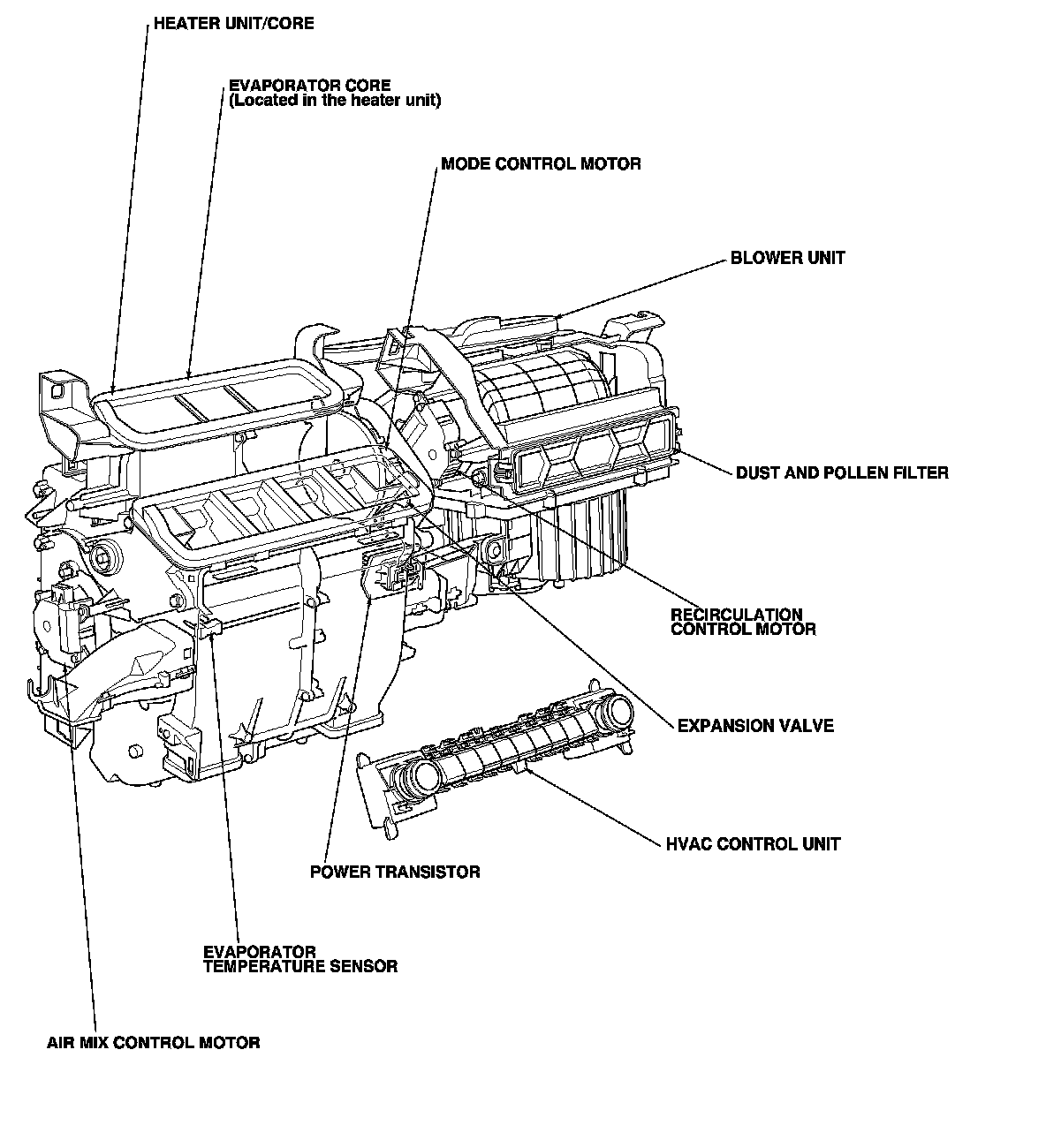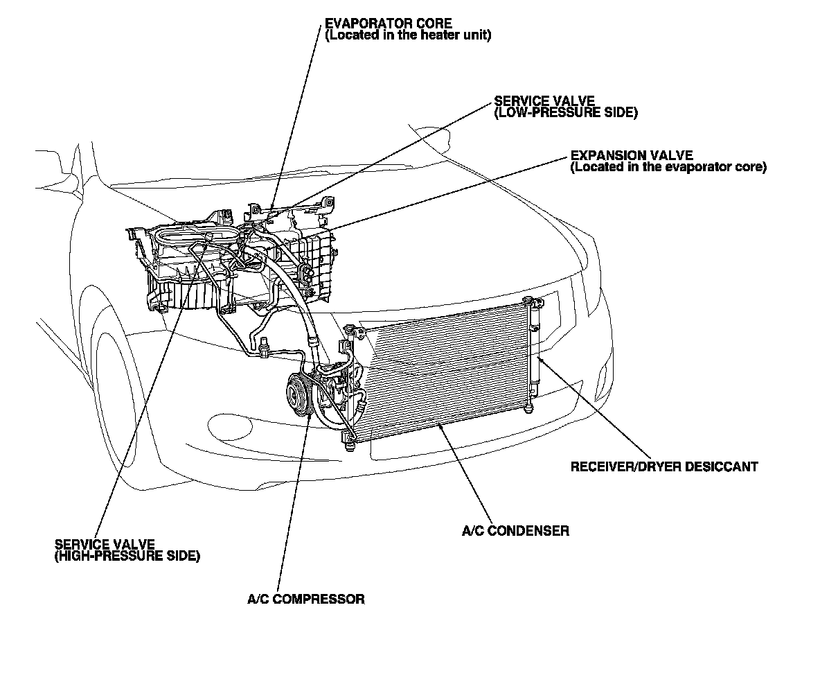Heating and A/C Component Location Index (Without Climate Control)