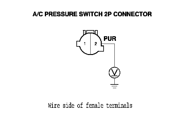 10. Measure the voltage between the A/C pressure switch 2P connector No. 2 terminal and body ground.