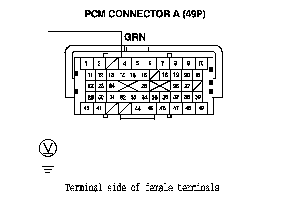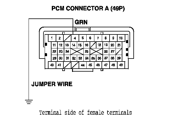 13. Connect PCM connector A (49P) No. 4 terminal to body ground with a jumper wire.